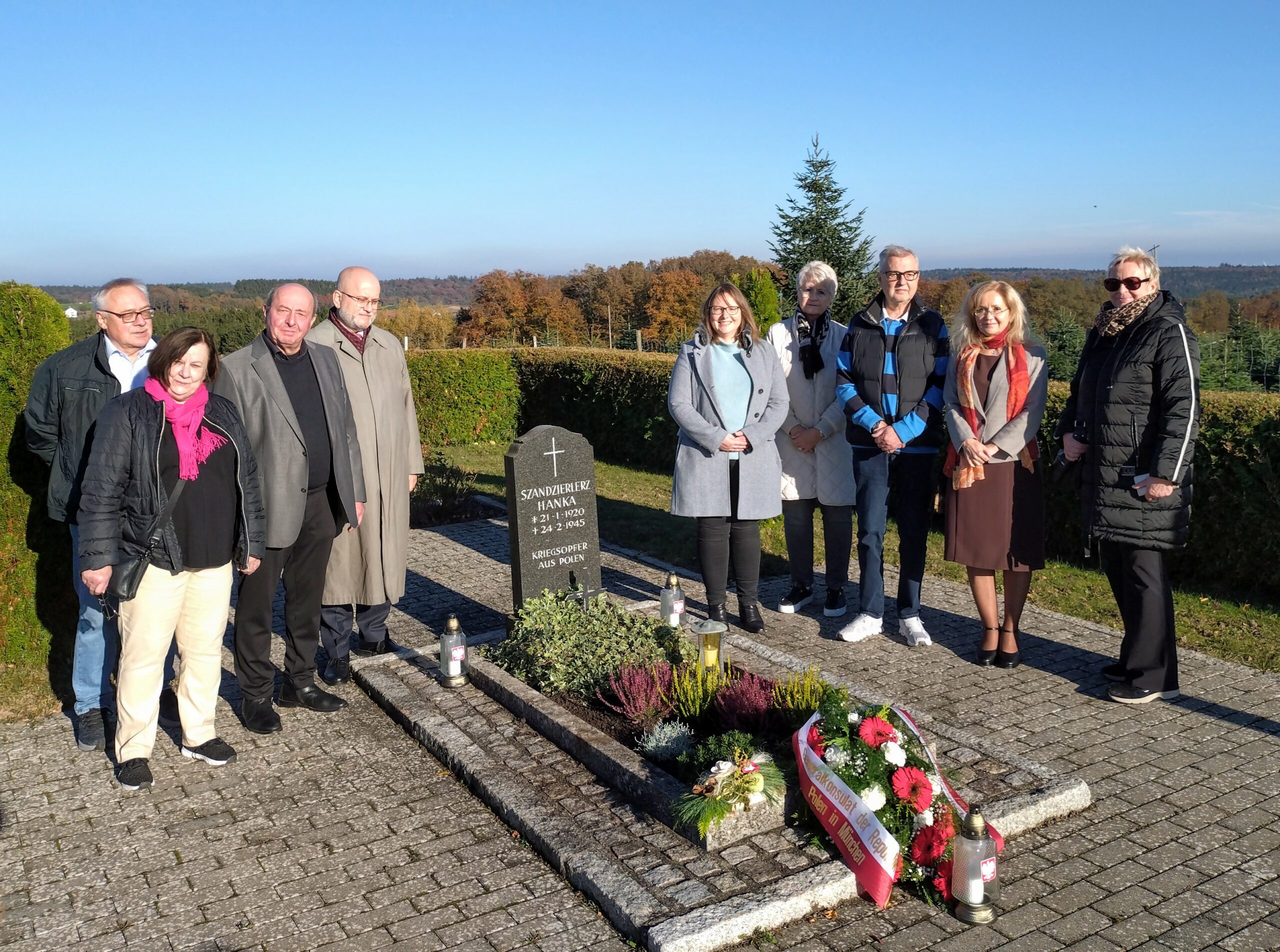 Dass der Besuch am Grabe von Hanka Szendzielarz für Wolski und seine Begleitung weit mehr war als diplomatische Pflichterfüllung, wurde schnell spürbar. Der bis zu seiner Versetzung nach München in Lemberg/Ukraine tätige Wolski spüre eine innere Verbindung zu “Hanka” und ihrer Familie, auch weil seine Familie ein identisches Familienwappen führe. Doch nicht nur das Schicksal dieser “Frau des Helden der polnischen „Resistance“” bewege ihn persönlich, sondern auch das ehrende Angedenken und die Erinnerungsarbeit, die der Heimat- und Museumsverein in ganz außergewöhnlicher Art und Weise leiste. So legte die Delegation nicht nur ein Blumengebinde an Ehrengrab “Hankas”nieder und stellte drei Gedenkkerzen auf, eine Gedenkkerze entzündete man auch am Denkmal für alle Kriegstoten der beiden Orte Balsbach und Wagenschwend, denn auch dort sei der Name von Hanka Szendzielarz eingraviert und sie somit in die Dorfgemeinschaft aufgenommen worden.